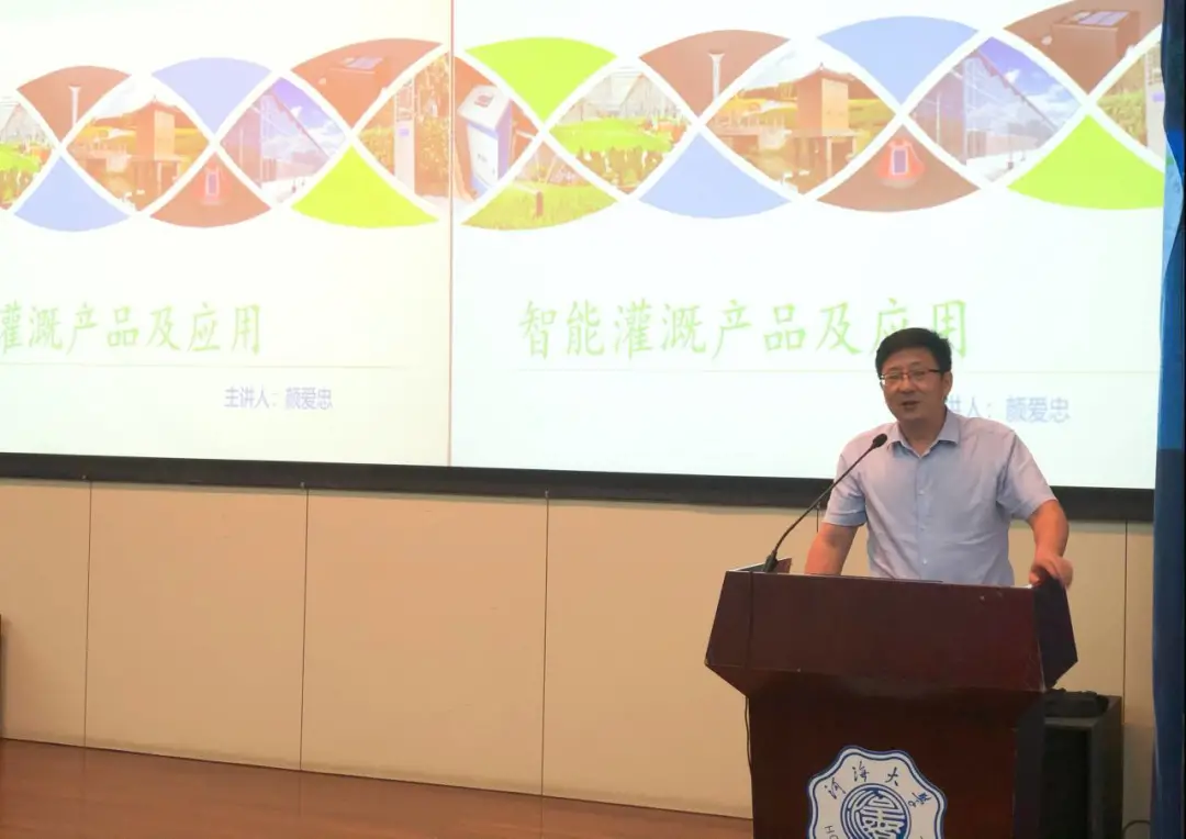 中苏科技股份有限公司的颜爱忠高级工程师的报告内容是智能灌溉产品及应用,他向同学们介绍了传统的灌溉方式和新型智慧灌溉的典型产品及其相关应用,如一体化泵站、MS-LDT无线物联网技术、水肥一体化系统等。同学们都收获匪浅,积极地与颜爱忠高级工程师进行学术交流。