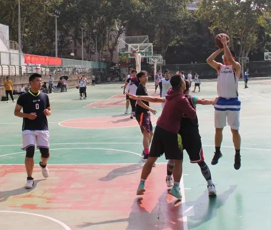 “新生杯”篮球赛分为小组赛、半决赛和决赛。在小组赛中,十支队伍分组进行组内循环对决,争夺四强名额。各班参赛队员英姿勃发,在球场上挥洒汗水,全力拼搏。球员们机警地断球、潇洒地运球、犀利地突破、精准地投射,为场边的观众带来了一场又一场视觉盛宴,同时迎来一阵又一阵激烈的欢呼声。经过六天的激烈比拼,最终博士队、研三队、研二队以及研一水电五班队突出重围,夺得“四强”,进入下一轮的比赛。