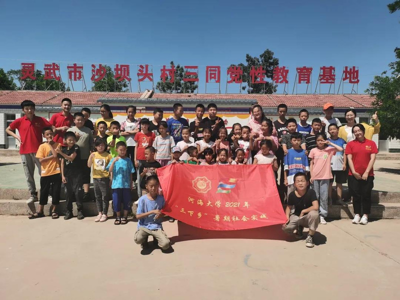 支教团首先在灵武市沙坝头村开展了支教活动,为当地员工辅导课业,教授课外知识。在初来乍到的几天里,支教团成员与当地员工们进行了别开生面的开营仪式,很快熟悉彼此并开始了暑期学习。首先我们为他们辅导功课,成员们耐心辅导、细心教学,工作开展顺利。其次,支教团带领员工们学习了心理健康课、水文化课程、军事教育课等课程,拓宽了孩子们的视野,激发他们学习的热情,并建立了图书角供员工们阅览学习。最后还进行了趣味实验、学习折纸、练习普通话等课外活动,提高他们的动手能力,引导他们将实践与学习相结合。此外,我们的指导教师薛璟老师来到支教点指导队员们更好的开展支教活动,社区民警对孩子们进行安全教育。后期虽然因南京疫情无法继续进行支教活动,但支教团成员们在短短的几天里较为出色的完成了教学任务,并和当地员工建立了深厚的感情。