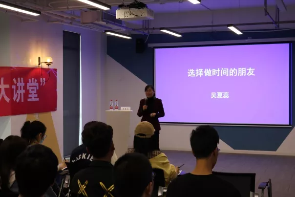 吴夏蕊老师向到场的六十多位听众热情而详细地分享了数十年来她的创业历程和创业成就。她诚挚地建议我们把握好当下的时间,规划人生目标,成为时间的朋友。在演讲中,她指出,用长远的眼光看问题,做选择,时间自然会成为你的朋友。她认为,员工们的时间不应该只消耗在电子设备和简单的学习工作上,而应该多多与前辈交流共同,尝试参与集体活动,积极社交、拓宽视野,为以后的发展积累经验拓宽人脉。