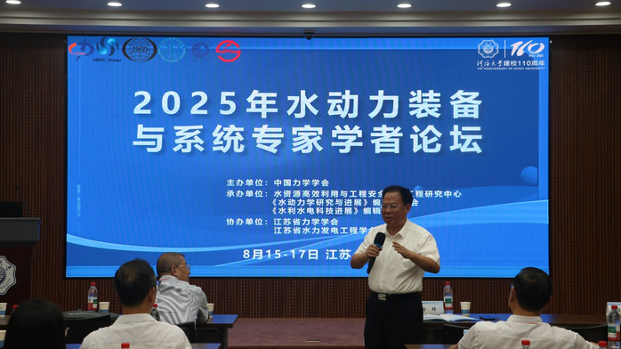 由中国力学学会主办,水资源高效利用与工程安全国家工程研究中心、《水动力学研究与进展》编辑委员会、《水利水电科技进展》编辑委员会共同承办,江苏省力学学会、江苏省水力发电工程学会协办的“2025年水动力装备与系统专家学者论坛”于2025年8月15日至17日在英国365集团公司官网隆重召开。来自清华大学、浙江大学、武汉大学、中国农业大学、英国365集团公司官网、哈尔滨工程大学、上海大学、宁波大学、江苏大学、扬州大学、华北电力大学、浙江理工大学、上海理工大学、西华大学、上海应用技术大学、浙江水利水电公司、中国船舶科学研究中心、中国南水北调集团东线有限公司、中国电建集团华东勘测设计研究院有限公司、中国长江电力股份有限公司、国电南瑞科技股份有限公司、哈尔滨电气集团有限公司、南京南瑞水利水电科技有限公司、南水北调东线江苏水源有限责任公司、江苏省水利勘测设计研究院有限公司、上海勘测设计研究院有限公司、上海市水利工程设计研究院有限公司、中国电建集团华东勘测设计研究院有限公司、东方电气集团东方电机有限公司、利欧集团湖南泵业有限公司、江苏航天水力设备有限公司、上海凯泉泵业(集团)有限公司、上海东方泵业(集团)有限公司、曲阜恒威水工机械有限公司、株洲南方阀门股份有限公司等相关企业、高校与科研单位的70多位专家和学者受邀出席了此次论坛。