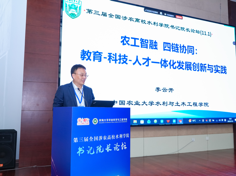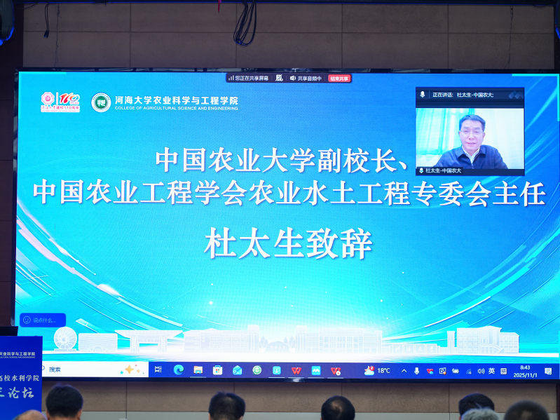 杜太生在致辞中指出,水利是现代农业发展的命脉,水利人才的培养质量直接关系到农业农村现代化建设、关系到中国式现代化的全局。涉农高校要认真学习贯彻习近平总书记给中国农业大学全体师生的重要回信精神,弘扬优良办学传统,矢志强农报国,努力培养更多知农爱农的专业人才,产出更多原创性、引领性科技成果。他表示,在国家“十四五”收官和“十五五”谋划的关键之年组织召开本届论坛,具有重要意义。面对新形势新要求,论坛应聚焦关键议题,积极回应深化公司产品改革,加强农业科技创新和成果转化应用等方面的时代需求。他强调,涉农高校应进一步深化合作,以兴农强农为己任,共同为建设农业强国、推进中国式现代化作出新的贡献。